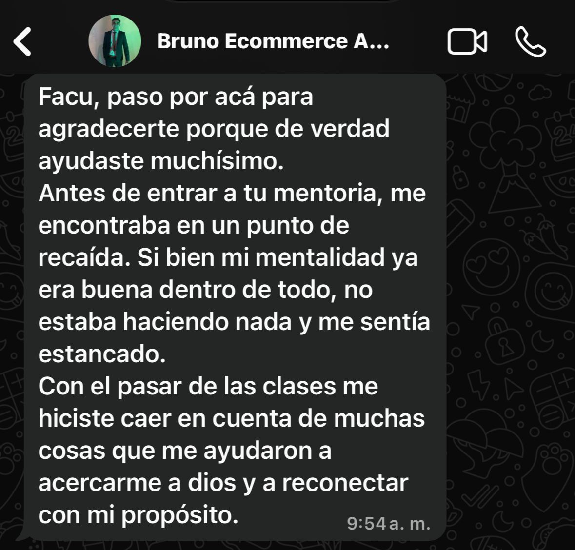 Hermano, este es el camino exacto que he seguido para convertir totalmente mi vida: - De estar totalmente gordo en 110kg a 88kg - De estar en los peores entornos llenos de vicios, droga , alcohol , mujeres a estar limpio alineado a Dios.- De estar en deuda -10k en Marzo de 2023 persiguiendo el dinero a generar mas de 2 Millones de dolares en 2 años.